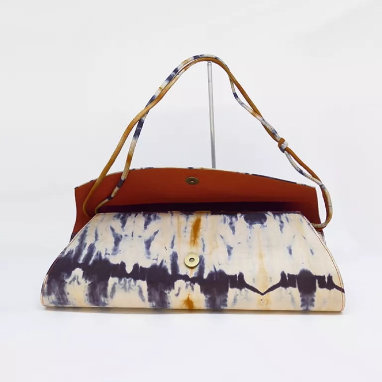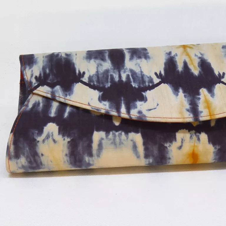 Preciosa cartera de fiesta compacta en seda teñida a mano con la técnica del «Shibori»