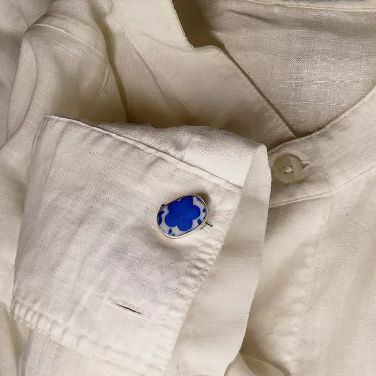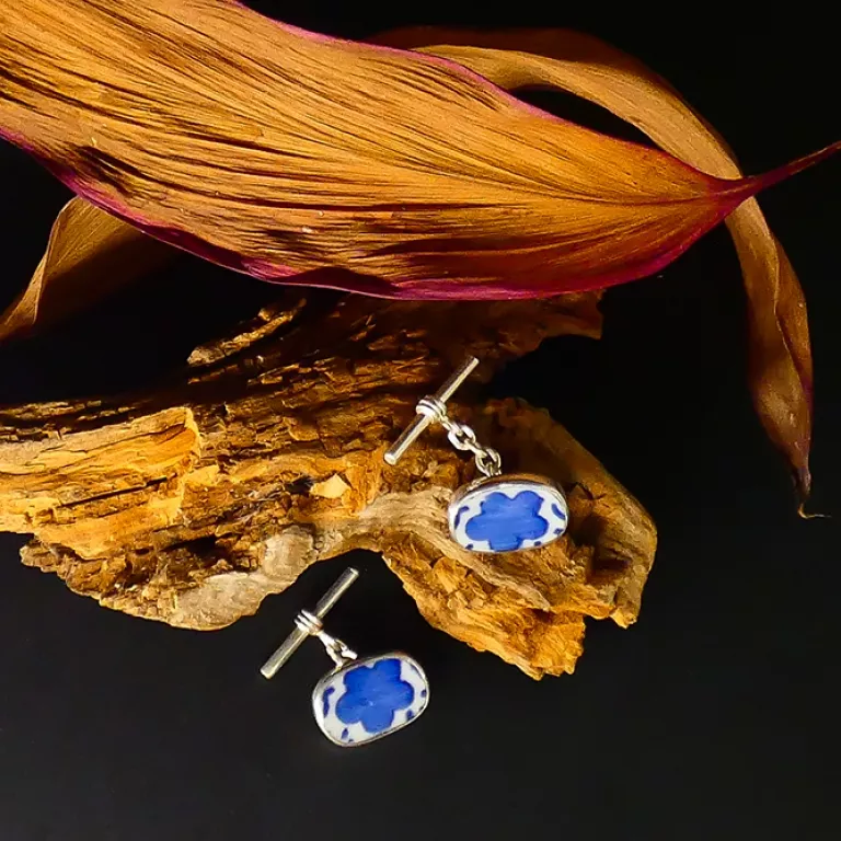 Materiales: Reproducciones originales de cerámica de la Dinastía Ming, (Azules y Blancos) y plata.