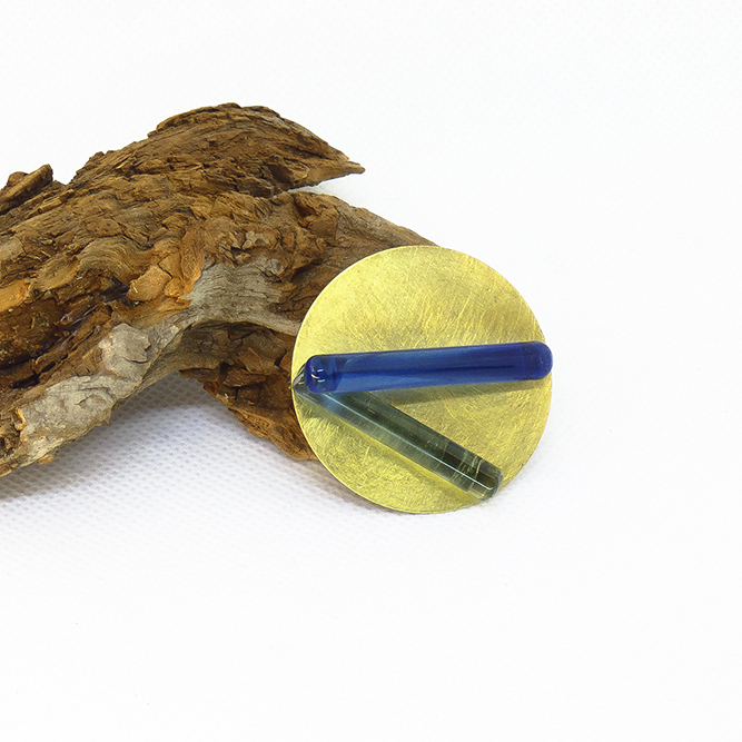 Inicio / Joyeria Artesanal Contemporánea / Joyería en Latón y Cobre / Broche Redondo Pequeño Vidrio Murano Azules