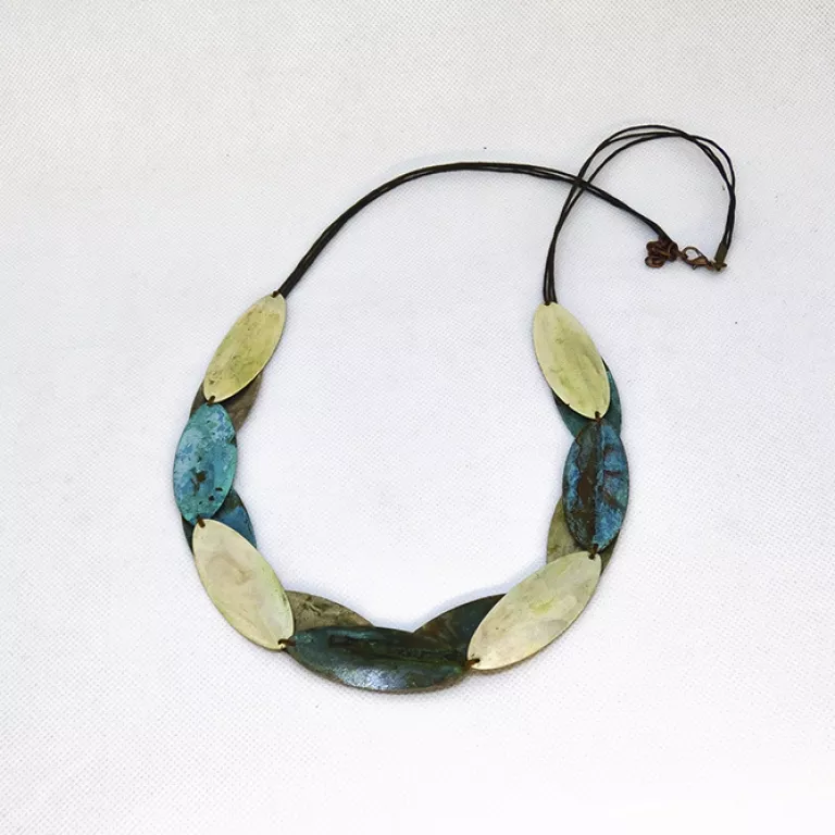 Collar largo reversible de chapa óval.