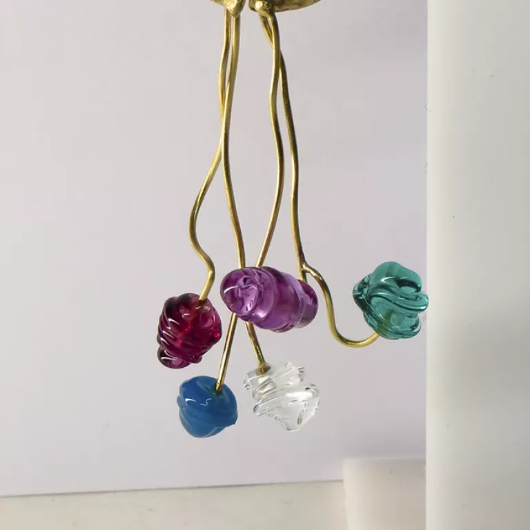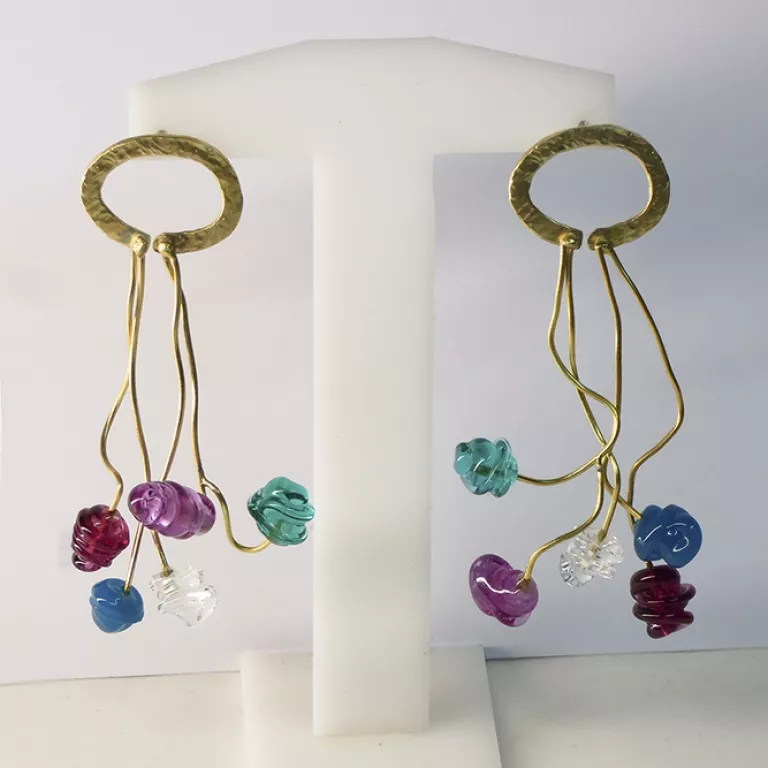 Preciosa colección de joyería artesanal en latón con baño de oro y vidrio "Murano"