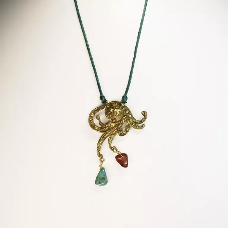 Inicio / Joyeria Artesanal Contemporánea / Joyería en Bronce / Colgante Único Pulpo Bronce Piedras