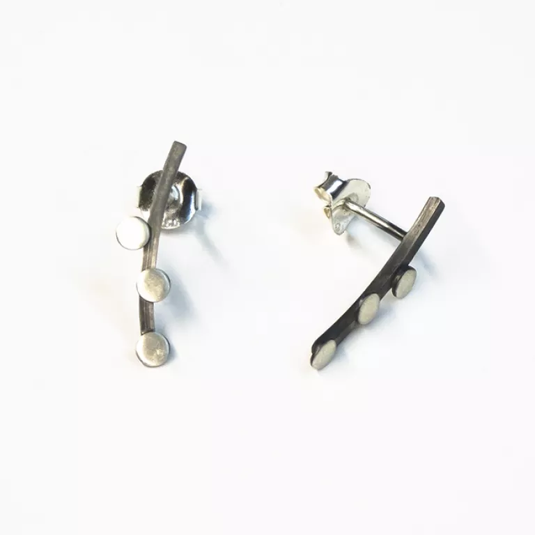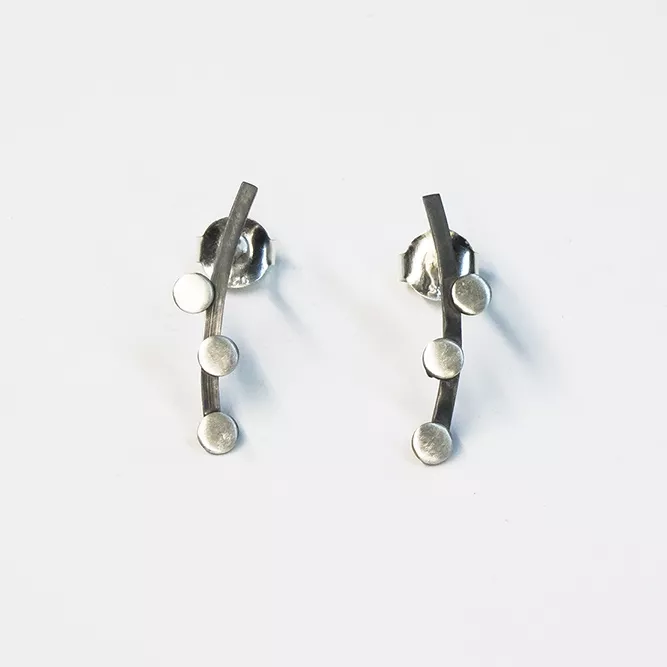 Brazo en inclinado en plata oxidada, decorada con 3 botones planos en plata mate.