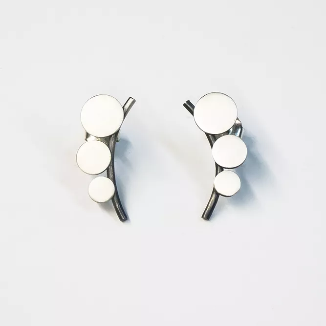 Pendiente rígido con 3 botones planos en tamaño decreciente.