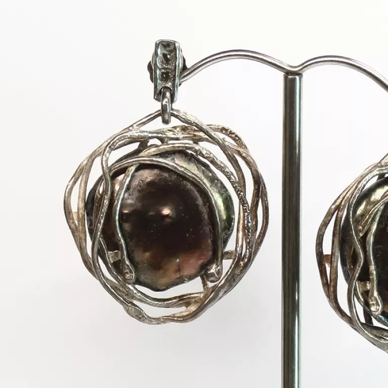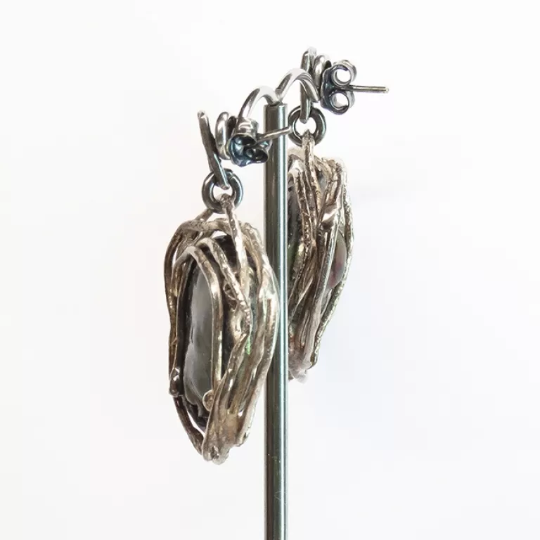Inicio / Joyeria Artesanal Contemporánea / Joyería en Plata de Ley / Pendientes Perla Barroca Tornasol