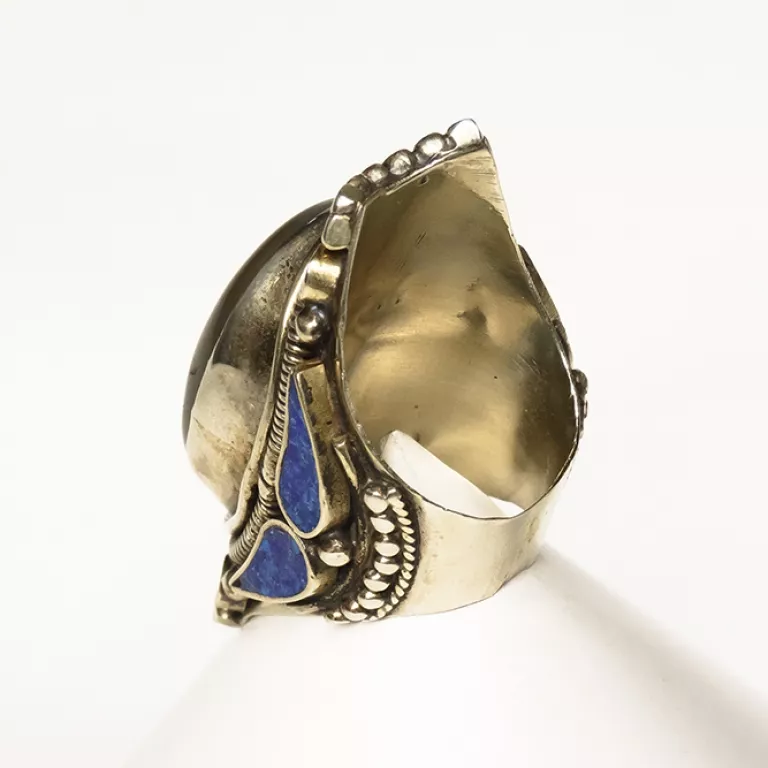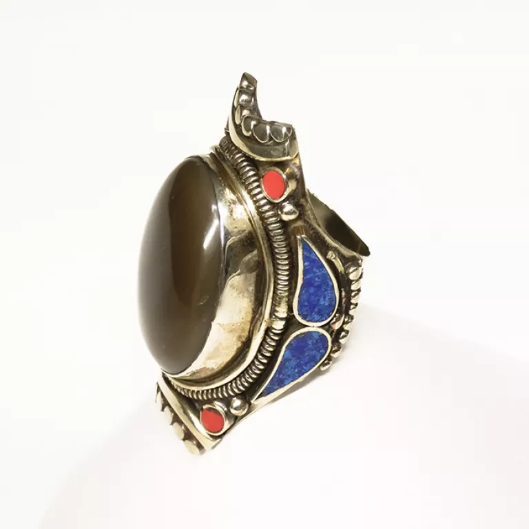 Inicio / Joyeria Artesanal Contemporánea / Joyería Tibetana / Anillo Maxi Plata Tibetana Ágata Musgosa, Coral y Lapislázuli