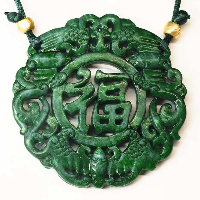 Colgante de jade verde con un sinograma (Letra China), que significa “BENDICIÓN”