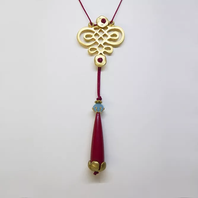 Colgante ajustable en hilo de seda japonesa carmesí.