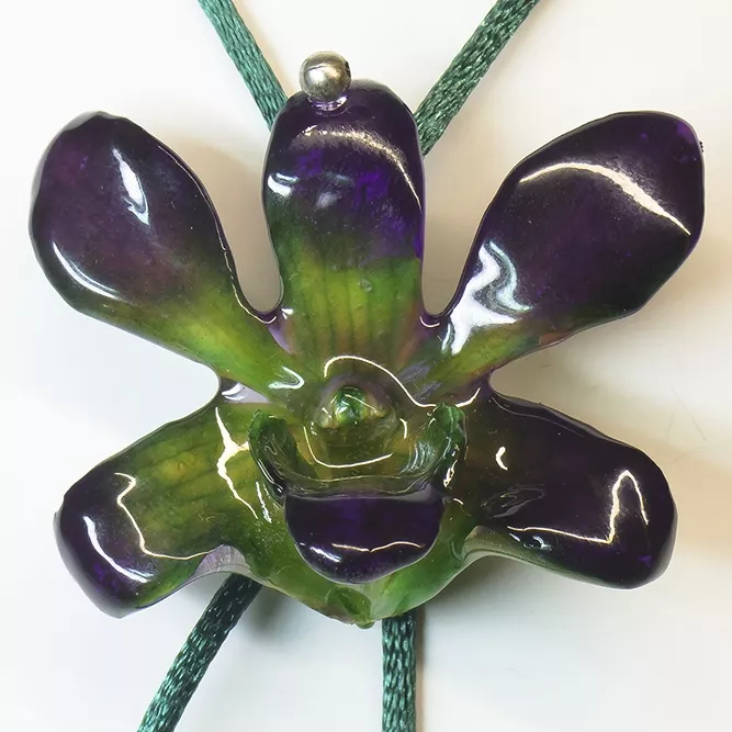 Cogante Orquídea más pequeña en tonos verdes y morados.