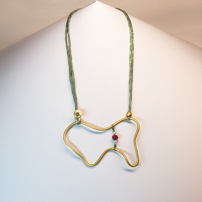 Colgante Sinuoso Seda Verde y Piedras