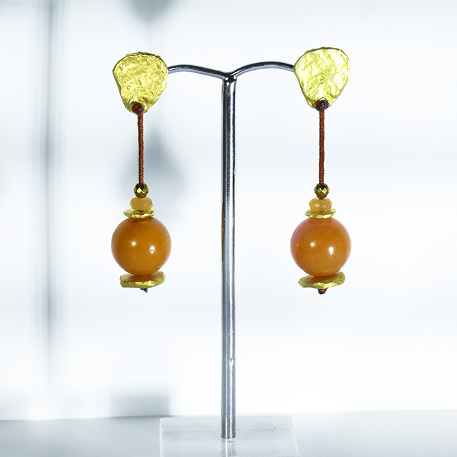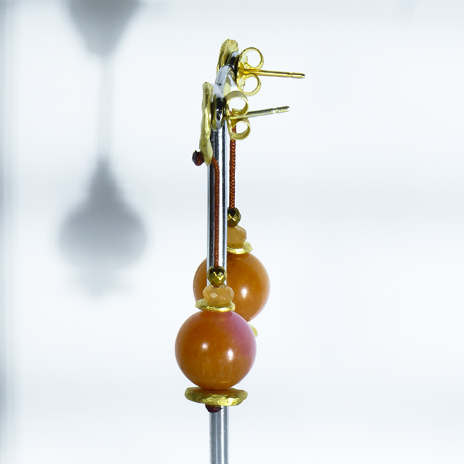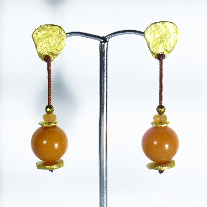 Inicio / Joyeria Artesanal con baño de Oro / Pendientes Baño Oro / Pendientes Hilo Jade Naranja/Rosa