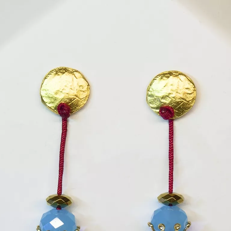 Inicio / Joyeria Artesanal con baño de Oro / Pendientes Baño Oro / Pendientes Hilo Lagrimas Jade Carmesí