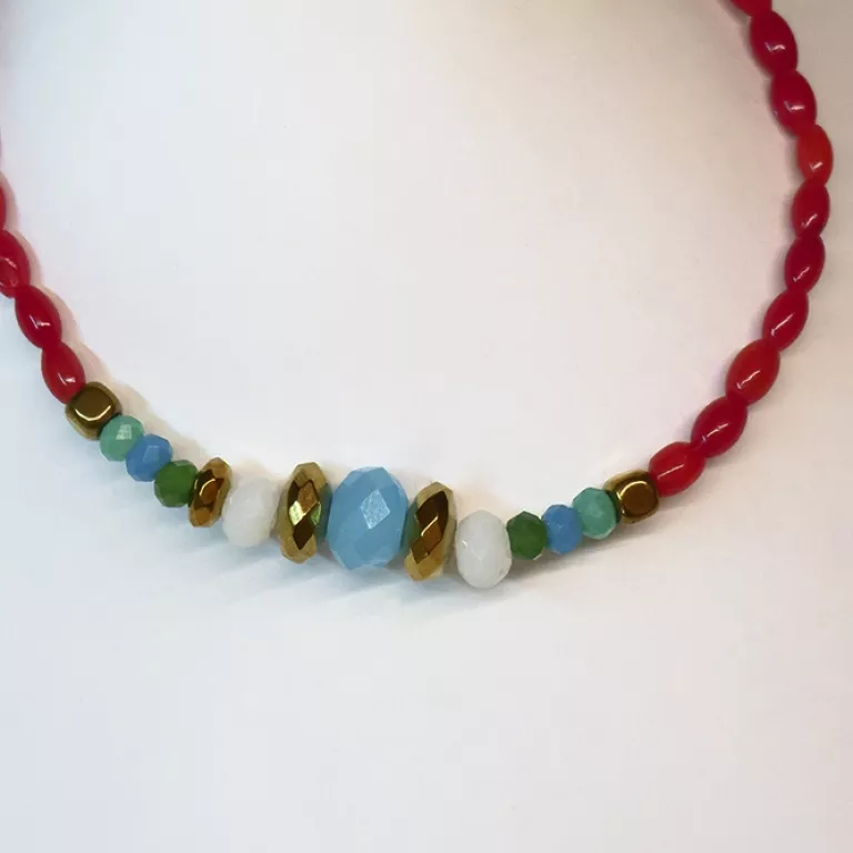 Montada con corales rojos en forma de arróz.