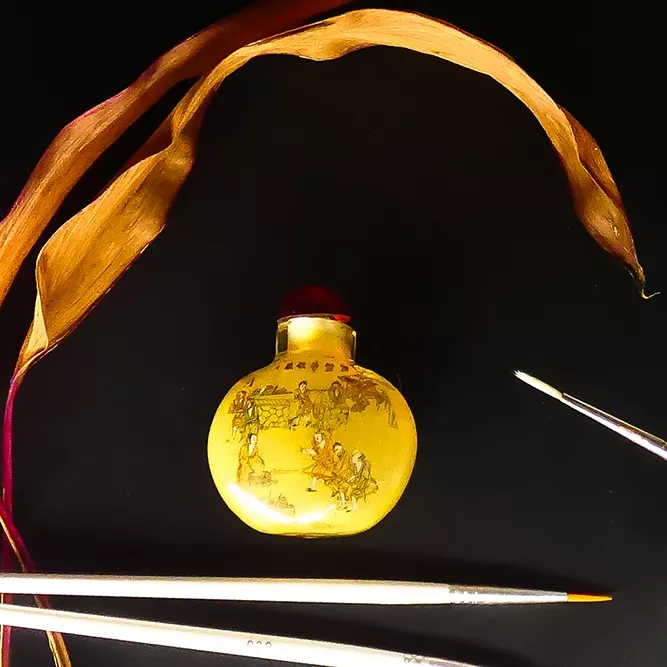 Esta técnica decorativa empezó en la Dinastía Quing y su esplendor llegó con la Dinastía Han. Usando un pincel curvo,