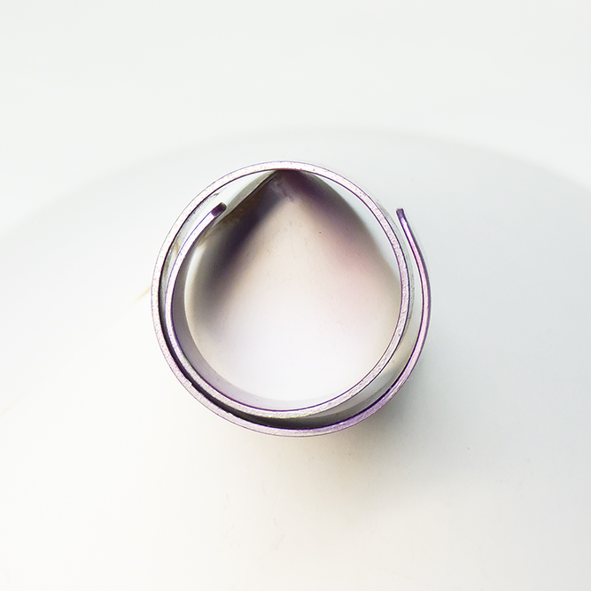 Original anillo de aluminio, con una lámina de dos vueltas sobre el dedo.