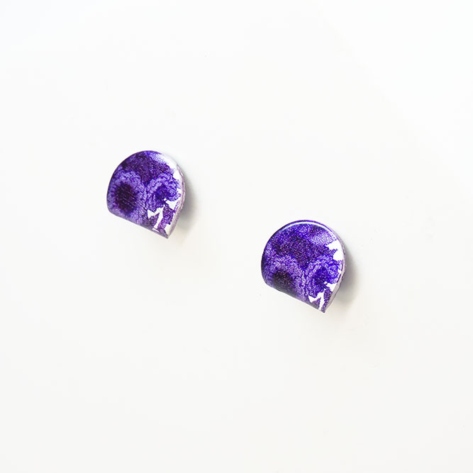 Pendientes Botón Aluminio Flor Morada